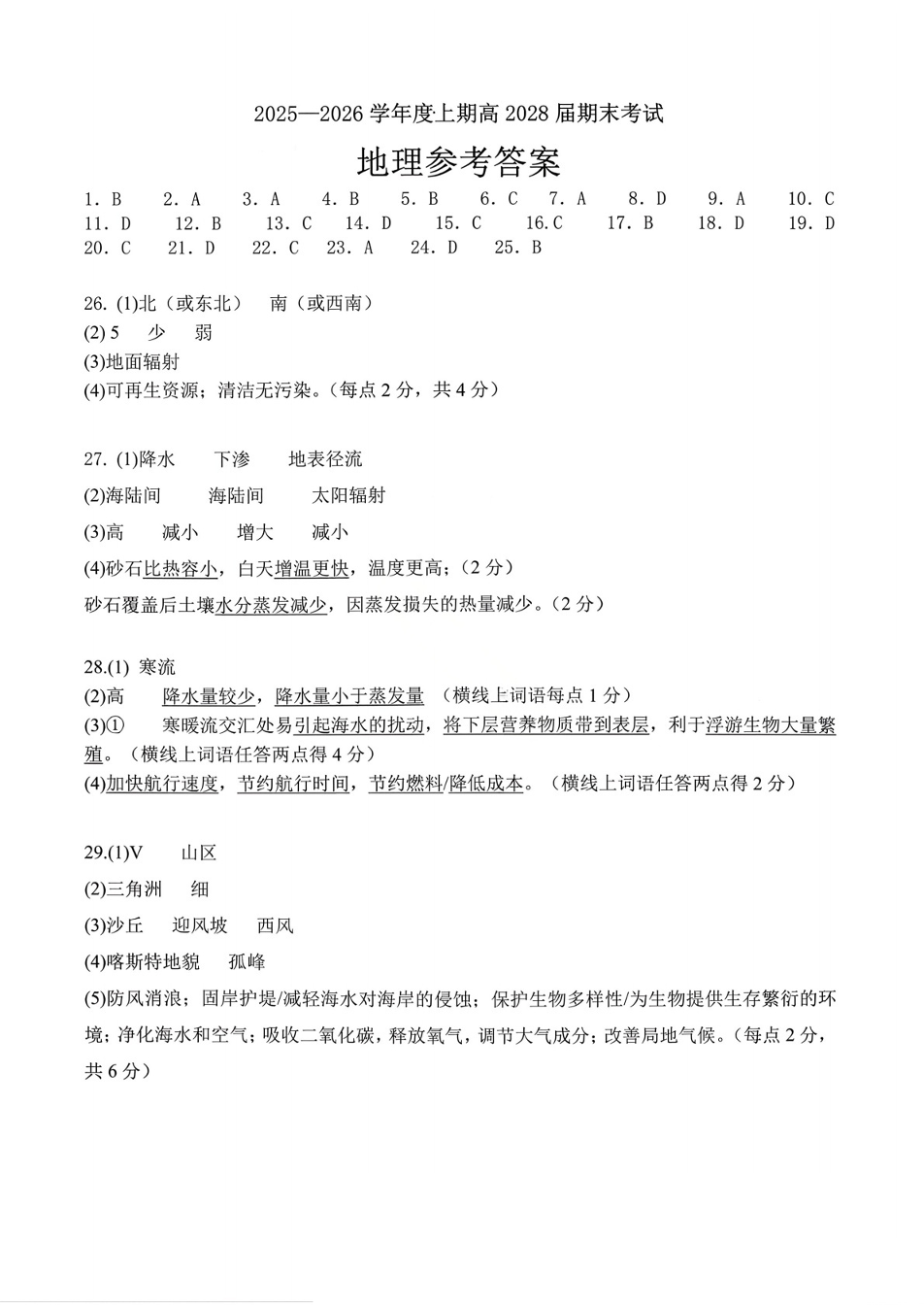 成都市第七中学2025-2026学年度上期高2028届高一期末考试 地理答案.pdf