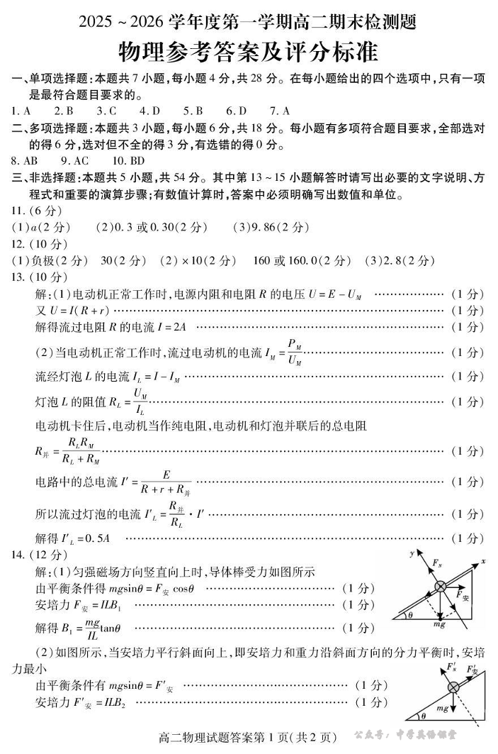 内江市2025-2026学年度第一学期高二期末检测题 物理答案.pdf