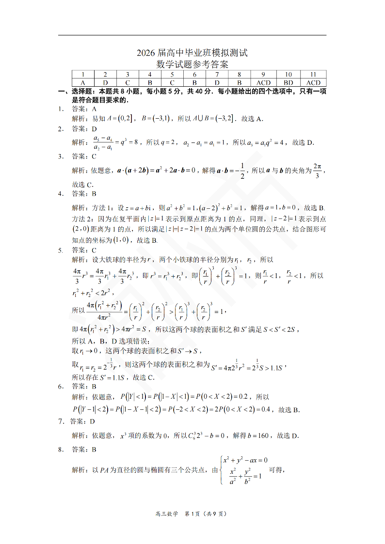 福建省七市2026届高中毕业班模拟测试 数学答案.pdf