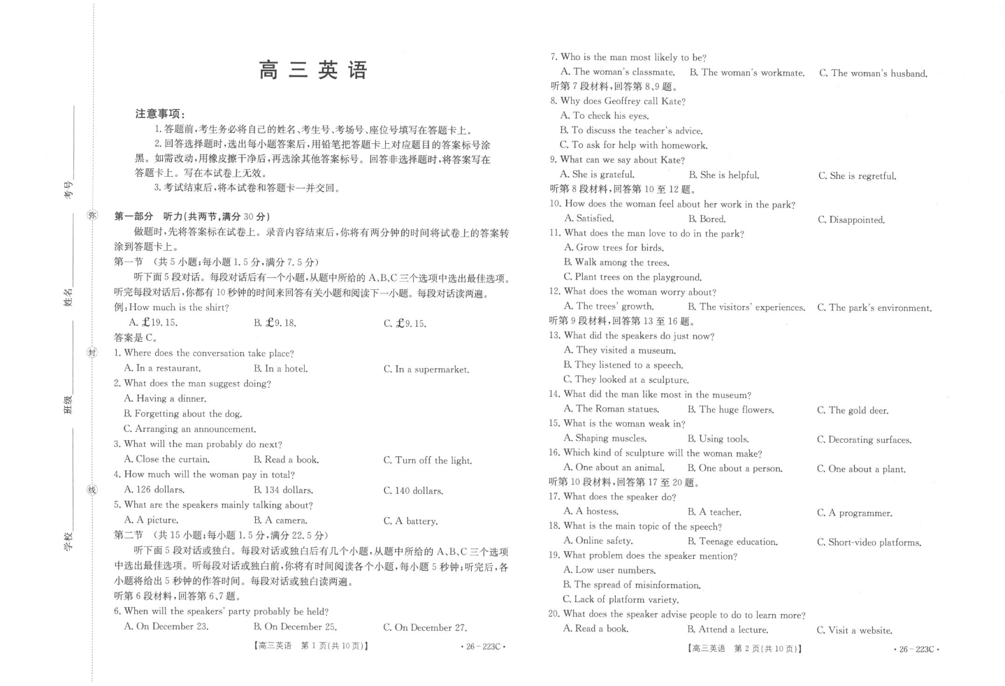 陕西省2026届高三上学期1月期末联考 英语.pdf