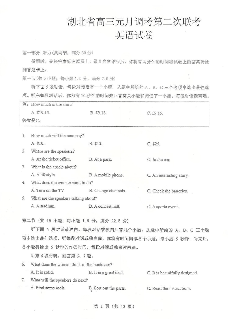 湖北省部分重点高中学校2025-2026学年高三元月调考第二次联考 英语.pdf