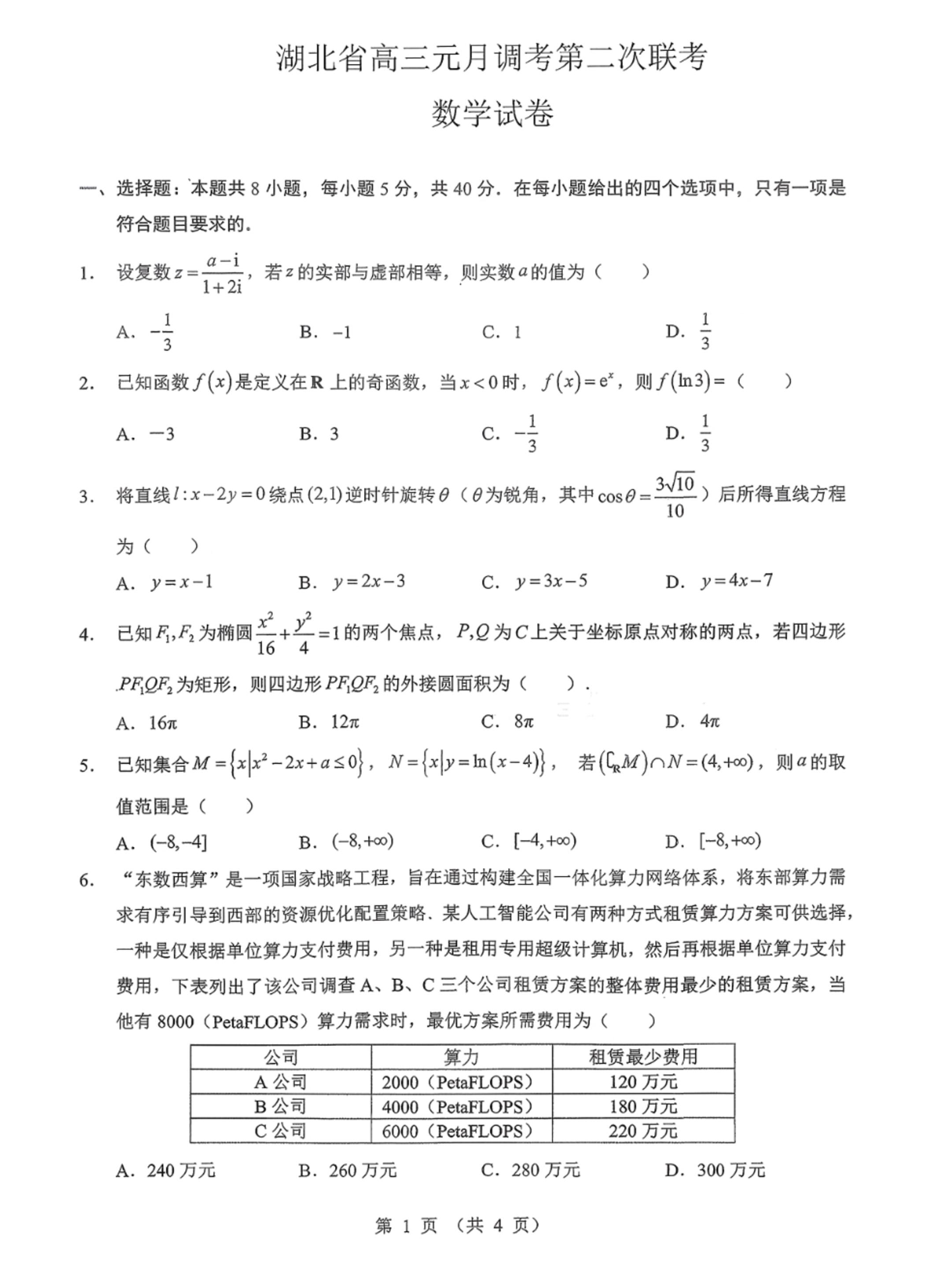 湖北省部分重点高中学校2025-2026学年高三元月调考第二次联考 数学.pdf