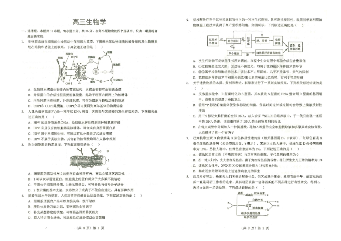 湖北省部分重点高中学校2025-2026学年高三元月调考第二次联考 生物.pdf