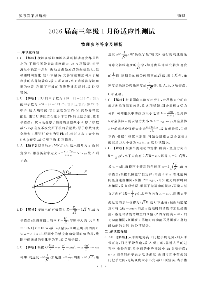 广东省衡水金卷2026届高三年级1月份适应性测试 物理答案.pdf