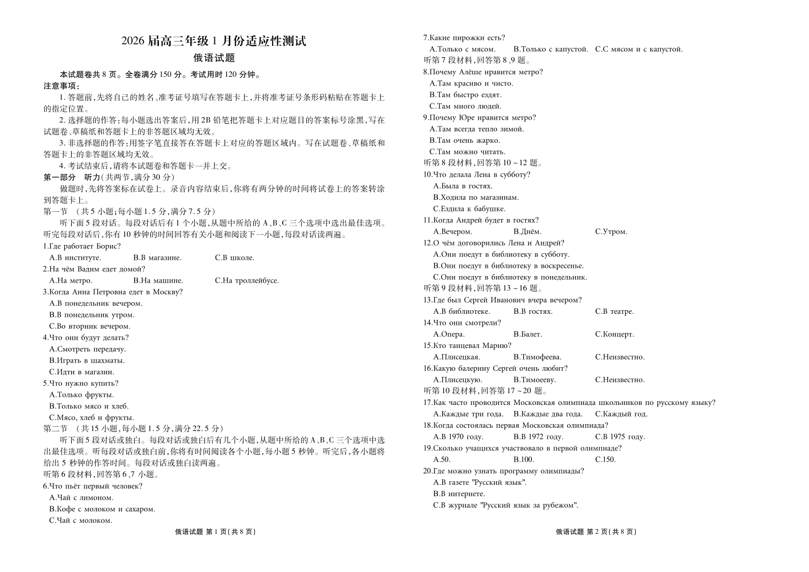 广东省衡水金卷2026届高三年级1月份适应性测试 俄语.pdf