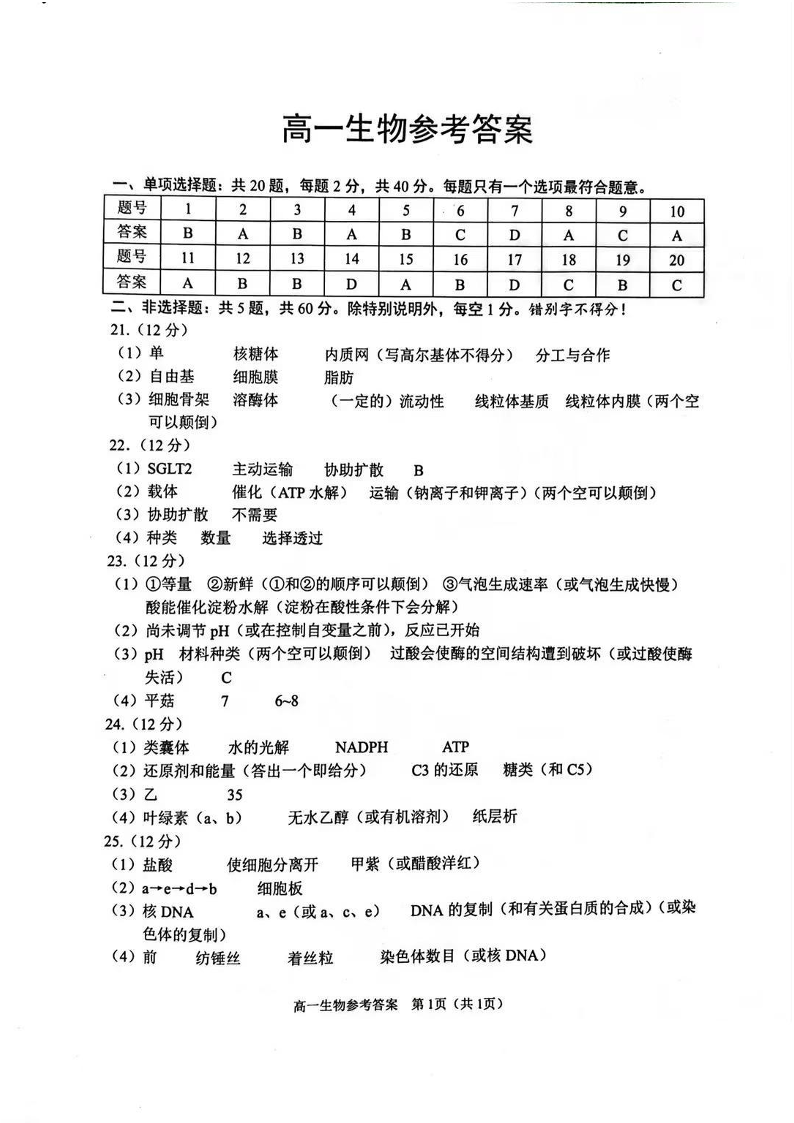 江苏省苏州市2025-2026学年度高一上学期期末考试 生物答案.pdf