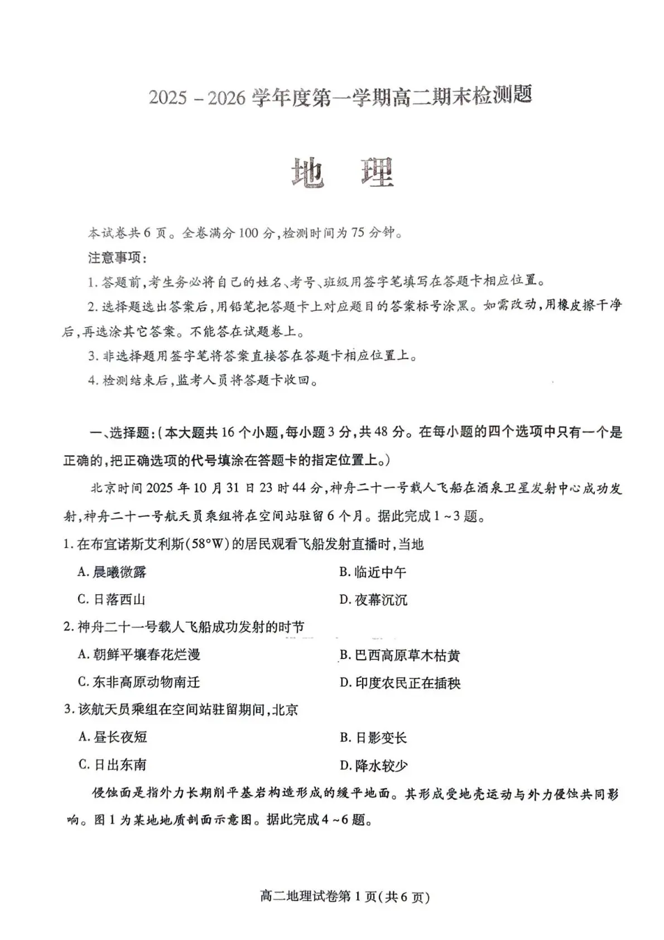 内江市2025-2026学年度第一学期高二期末检测题 地理.pdf