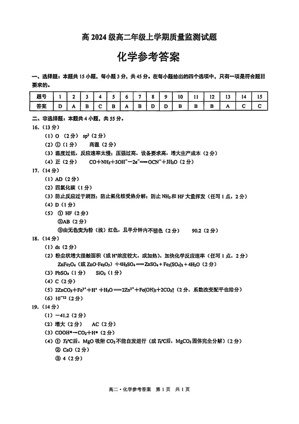 泸州市高2024级高二年级上学期质量监测试题 化学答案.pdf