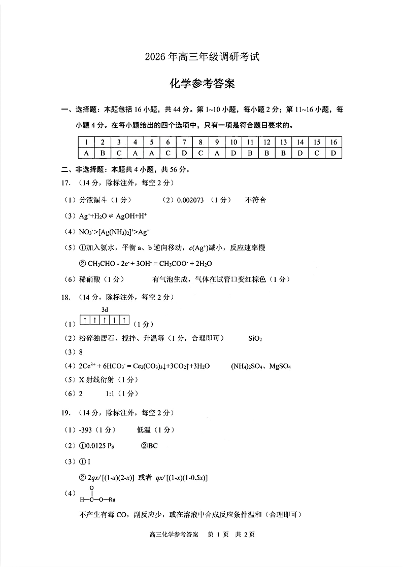 广东省揭阳市、东莞市2026年高三年级上学期期末调研考试 化学答案.pdf
