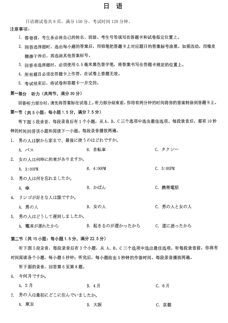 重庆市2026年普通高等学校招生全国统一考试 日语.pdf
