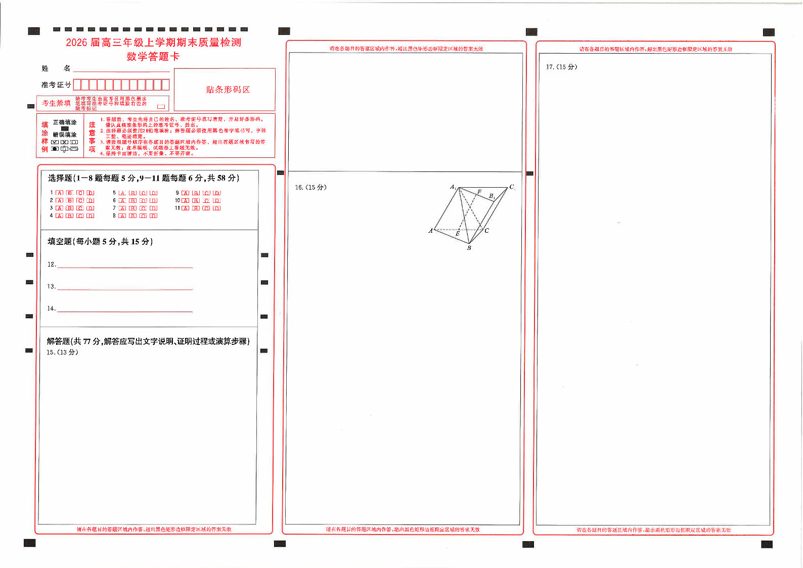 武昌区2026届高三年级上学期期末质量检测 数学答题卡.pdf