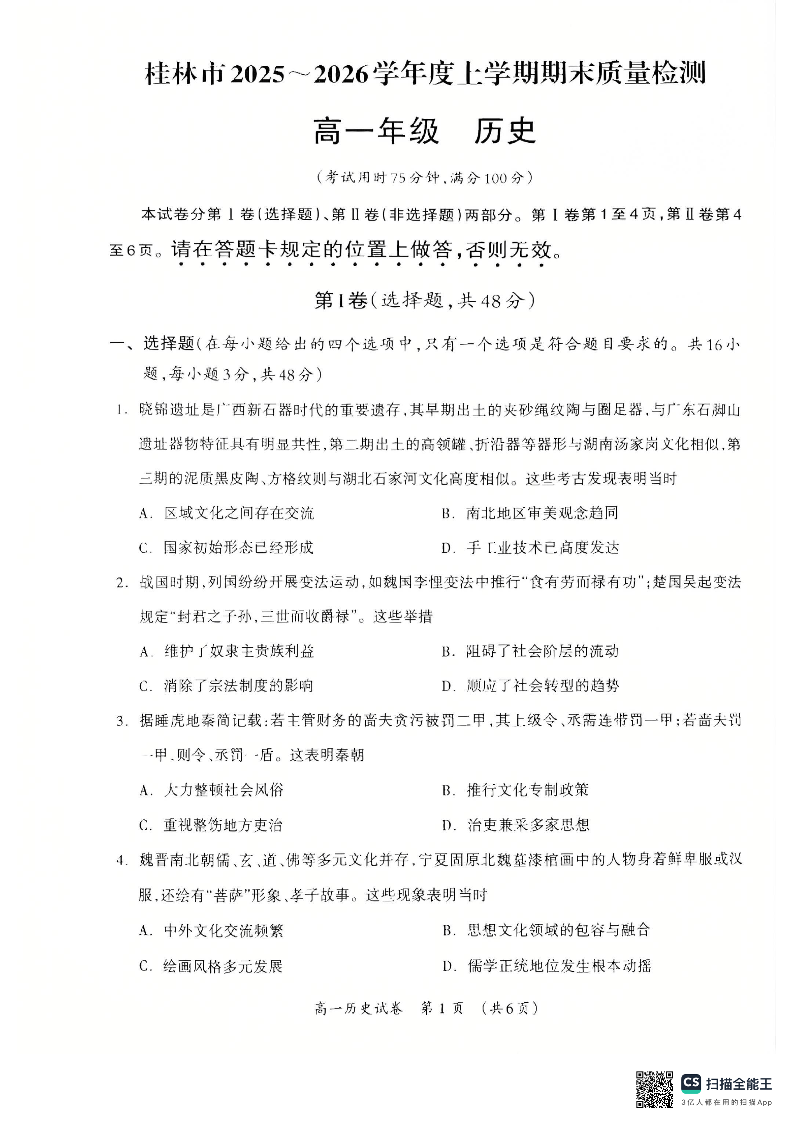 桂林市2025-2026学年度高一年级上学期期末质量检测 历史.pdf