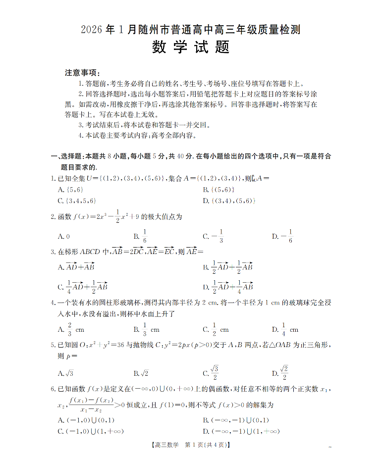 2026年1月随州市普通高中高三年级期末质量检测 数学.pdf