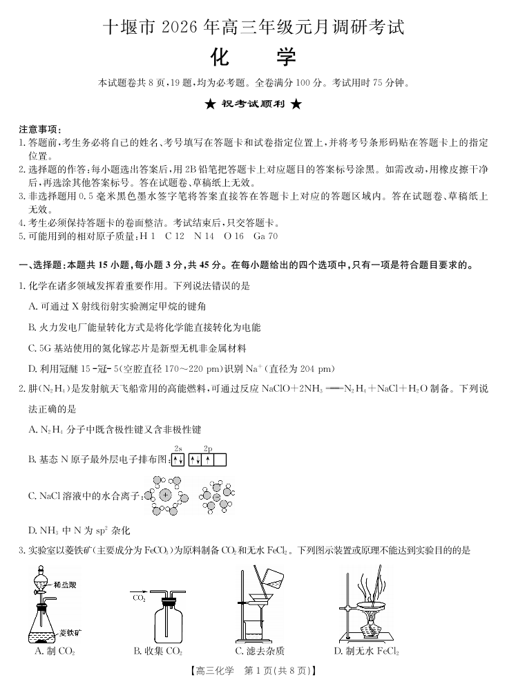 十堰市2026年高三年级元月调研考试 化学.pdf