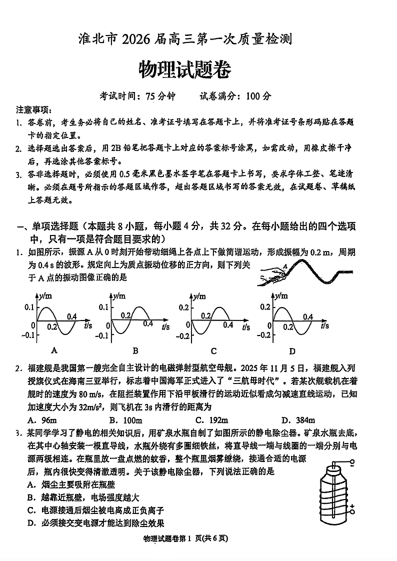 安徽省淮北市2026届高三年级第一次质量检测 物理.pdf