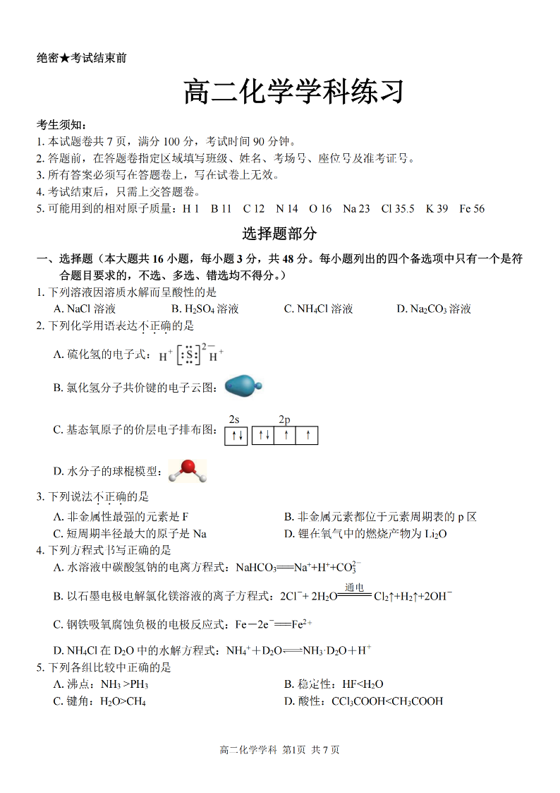 浙江省宁波三锋教研联盟2025学年高二第一学期期末测试 化学.pdf