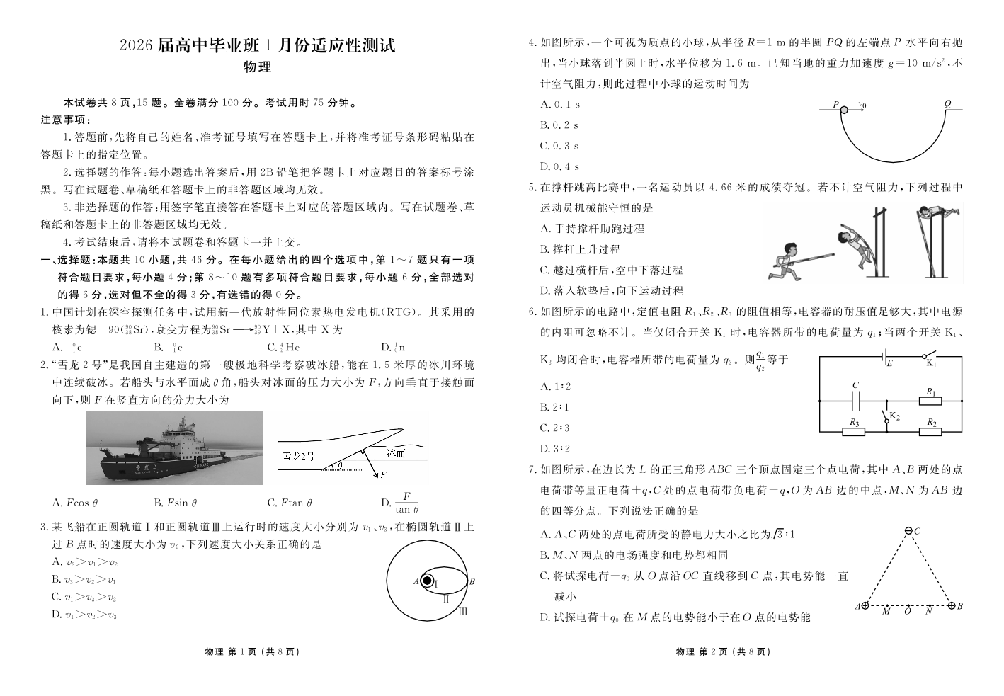 物理正文(2026届高中毕业班1月份适应性测试).pdf