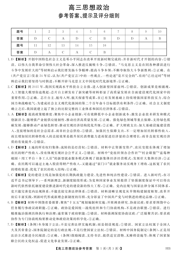 河北省邯郸市2026年高三上学期二月份金科大联考 政治答案.pdf