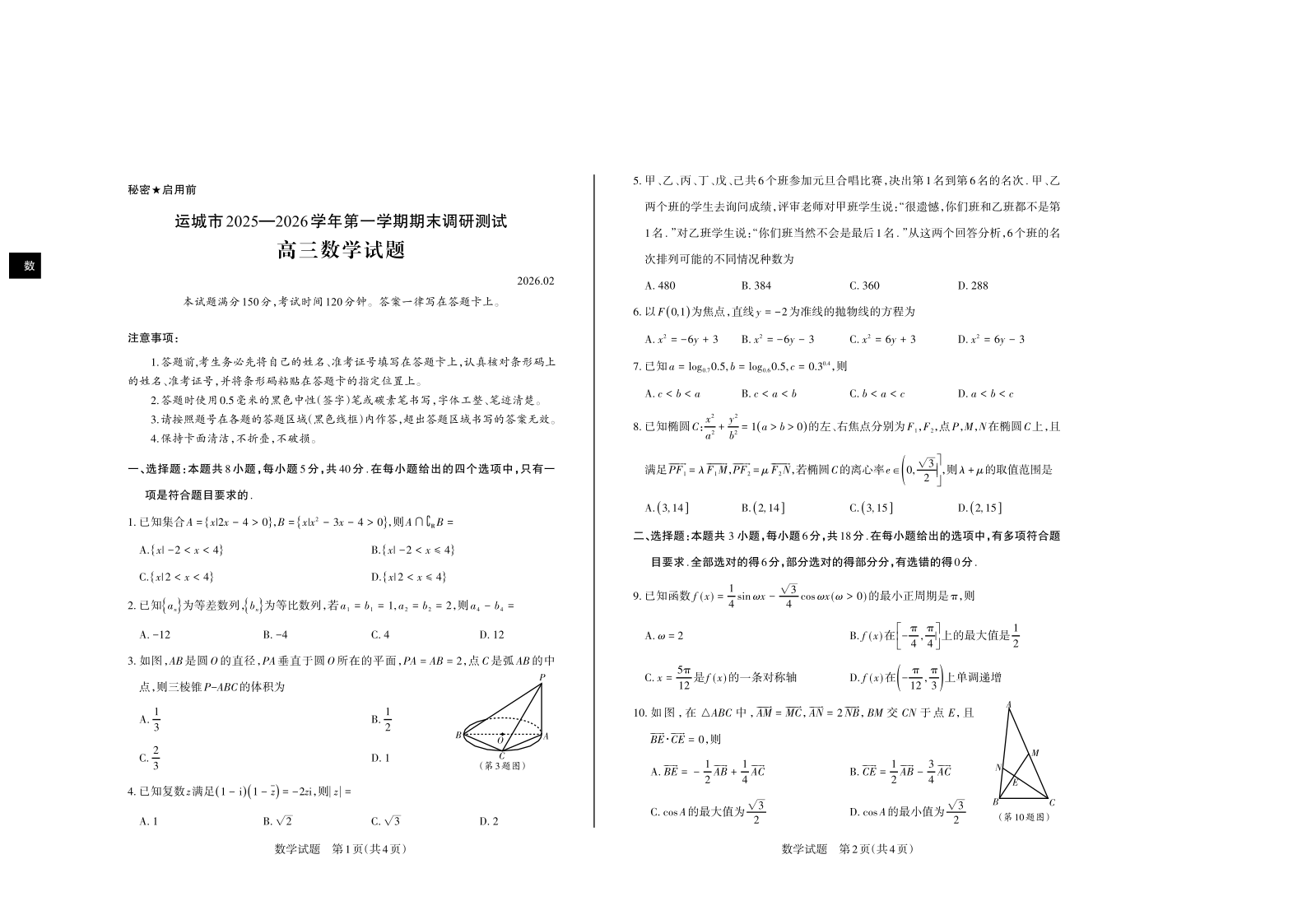 运城市2025—2026学年第一学期高三期末调研测试 数学.pdf