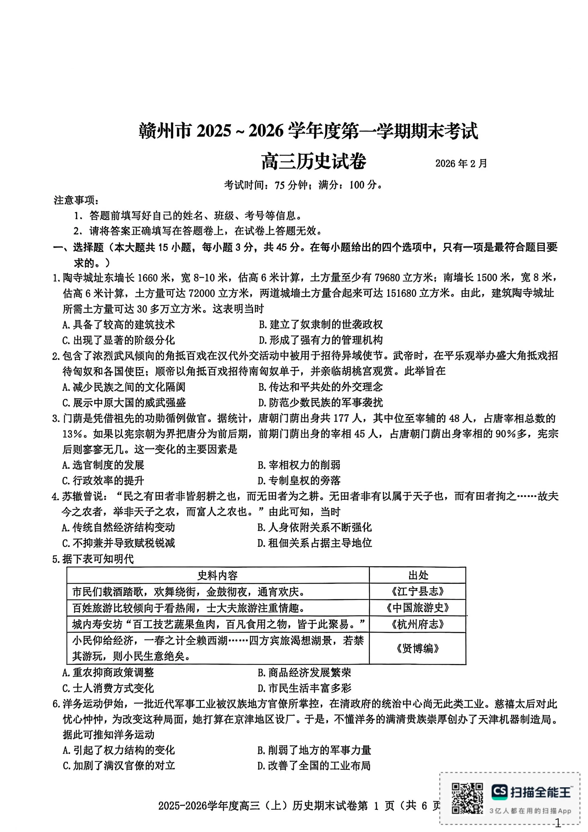 赣州市2025一2026学年度第一学期期末考试 历史.pdf