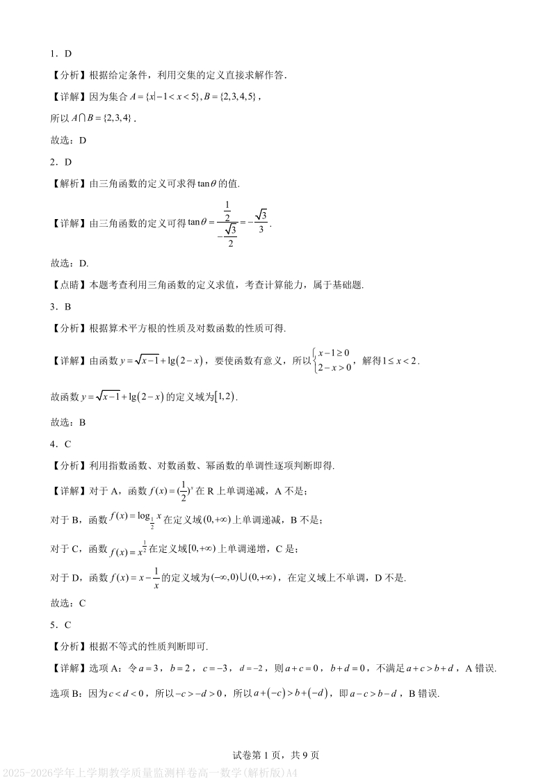 攀枝花市2025-2026学年度高一(上)教学质量监测样卷 数学答案.pdf