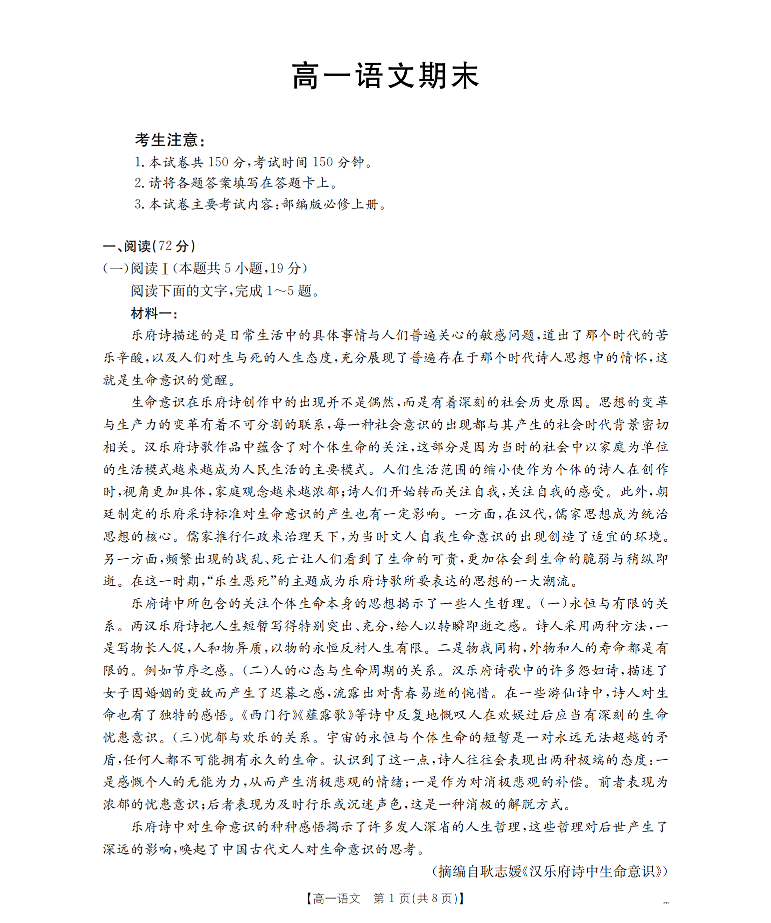 甘肃省定西地区2025-2026学年(上)高一期末考试 语文.pdf