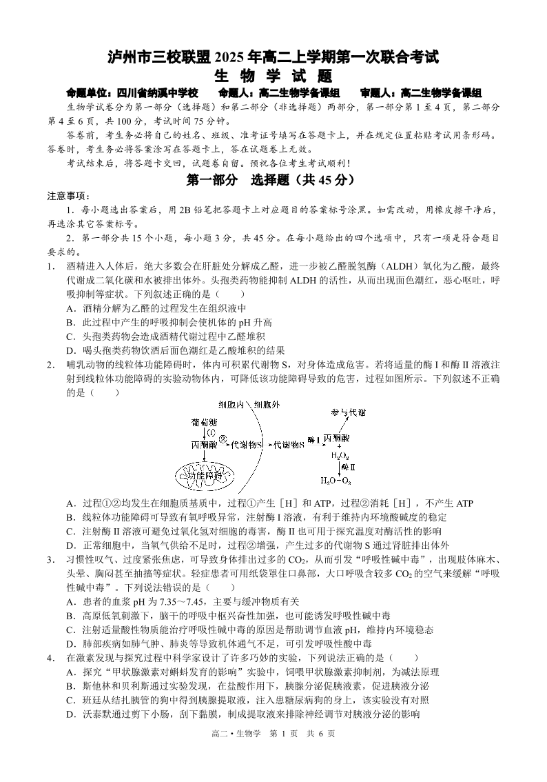四川省泸州市三校联盟2025-2026学年高二上学期第一次联合考试 生物.pdf
