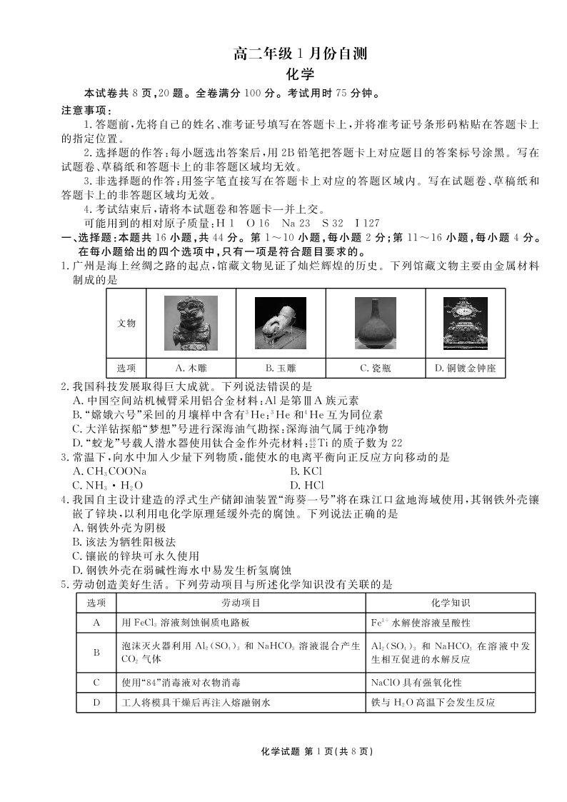 高二年级1月份自测化学正文.pdf