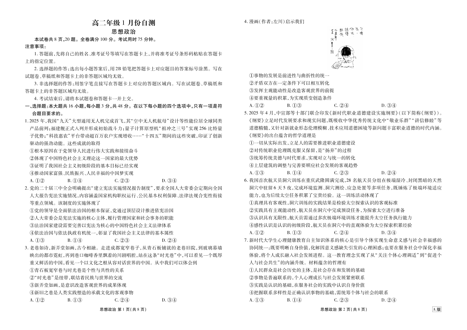 高二年级1月份自测政治正文A版.pdf