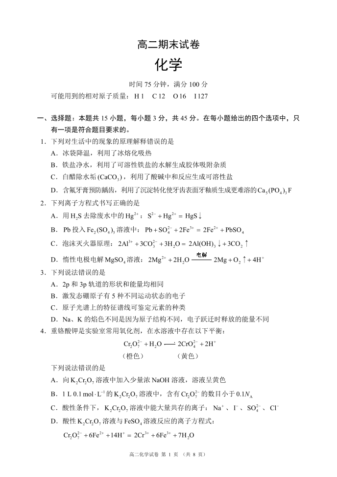 四川省蓉城名校联盟2027届高二年级上学期期末考试 化学.pdf