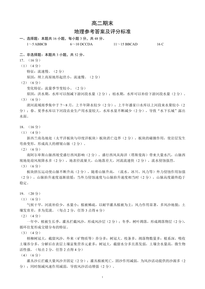四川省蓉城名校联盟2027届高二年级上学期期末考试 地理答案.pdf