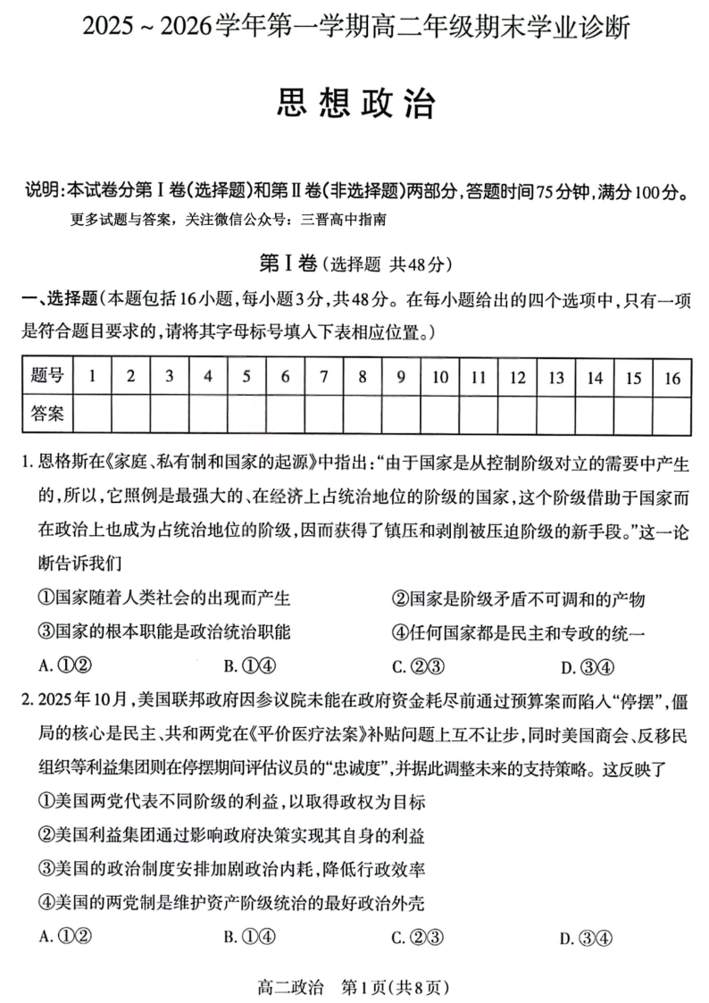 太原市2025-2026学年第一学期高二年级期末学业诊断 政治.pdf