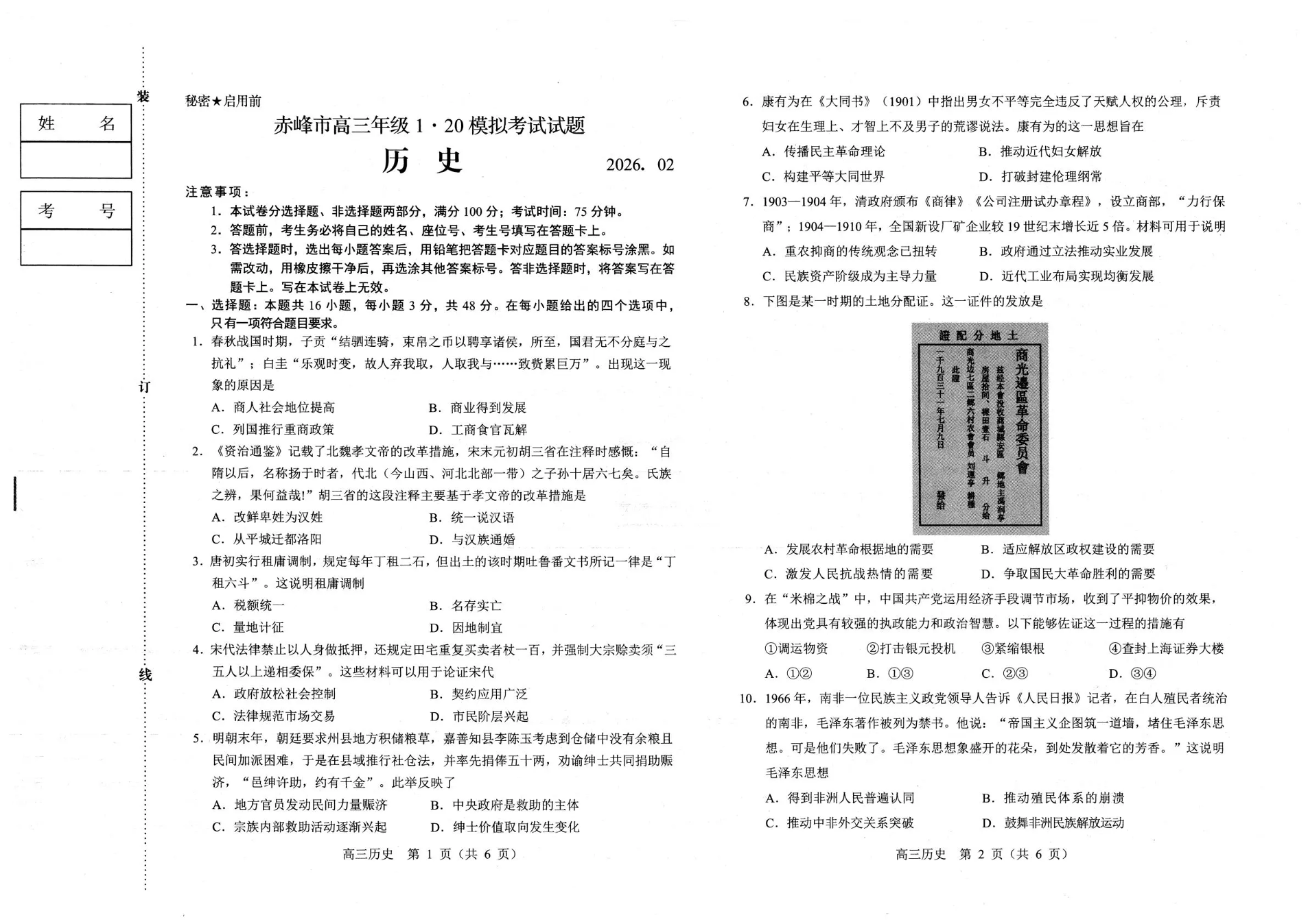 赤峰市高三年级1·20模拟考试 历史.pdf