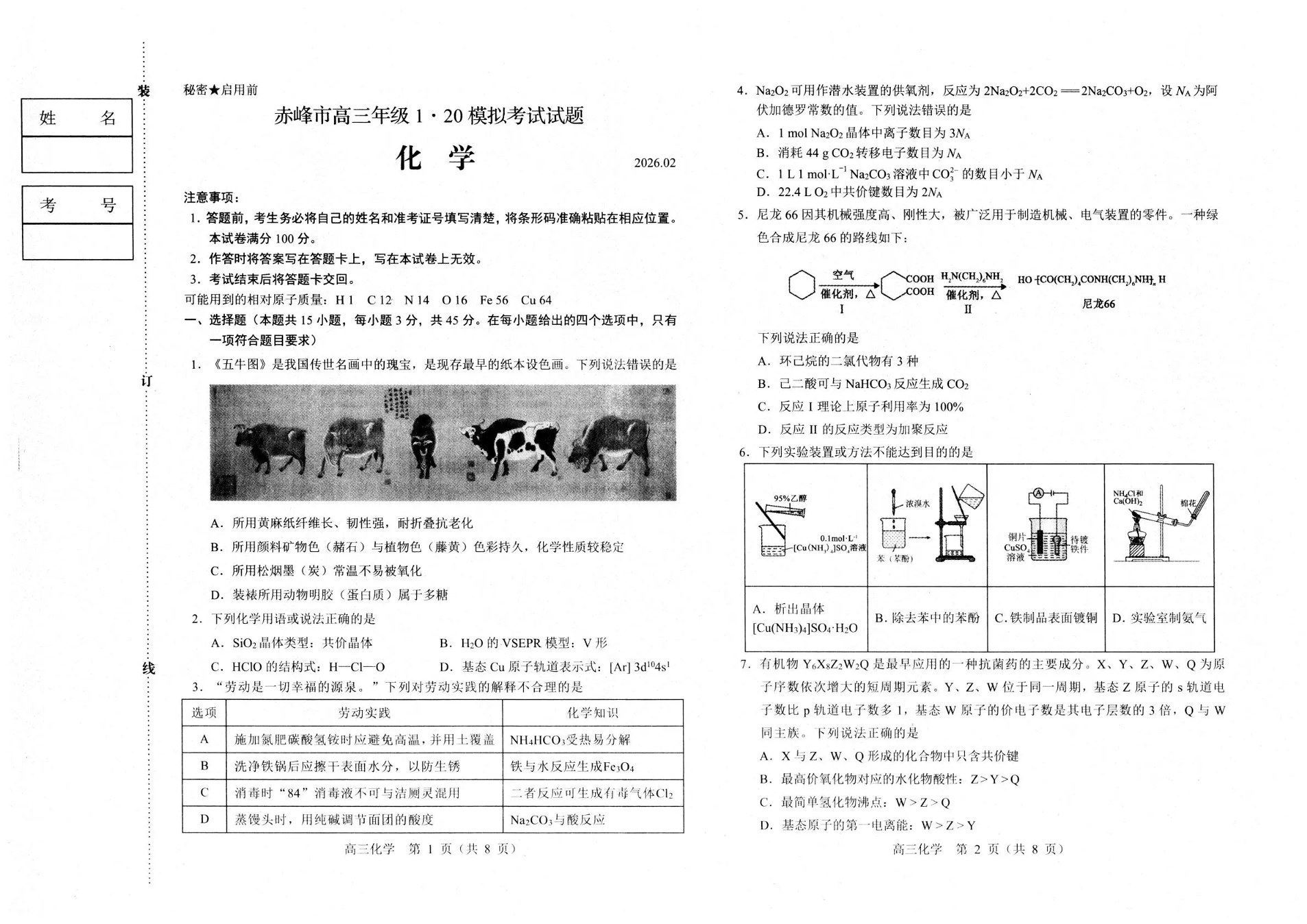 赤峰市高三年级1·20模拟考试 化学.pdf