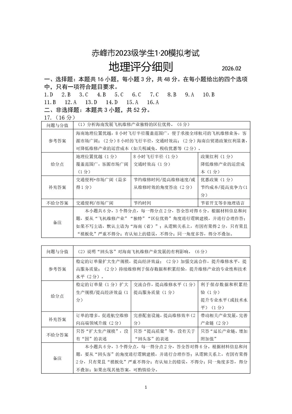 赤峰市高三年级1·20模拟考试 地理答案.pdf