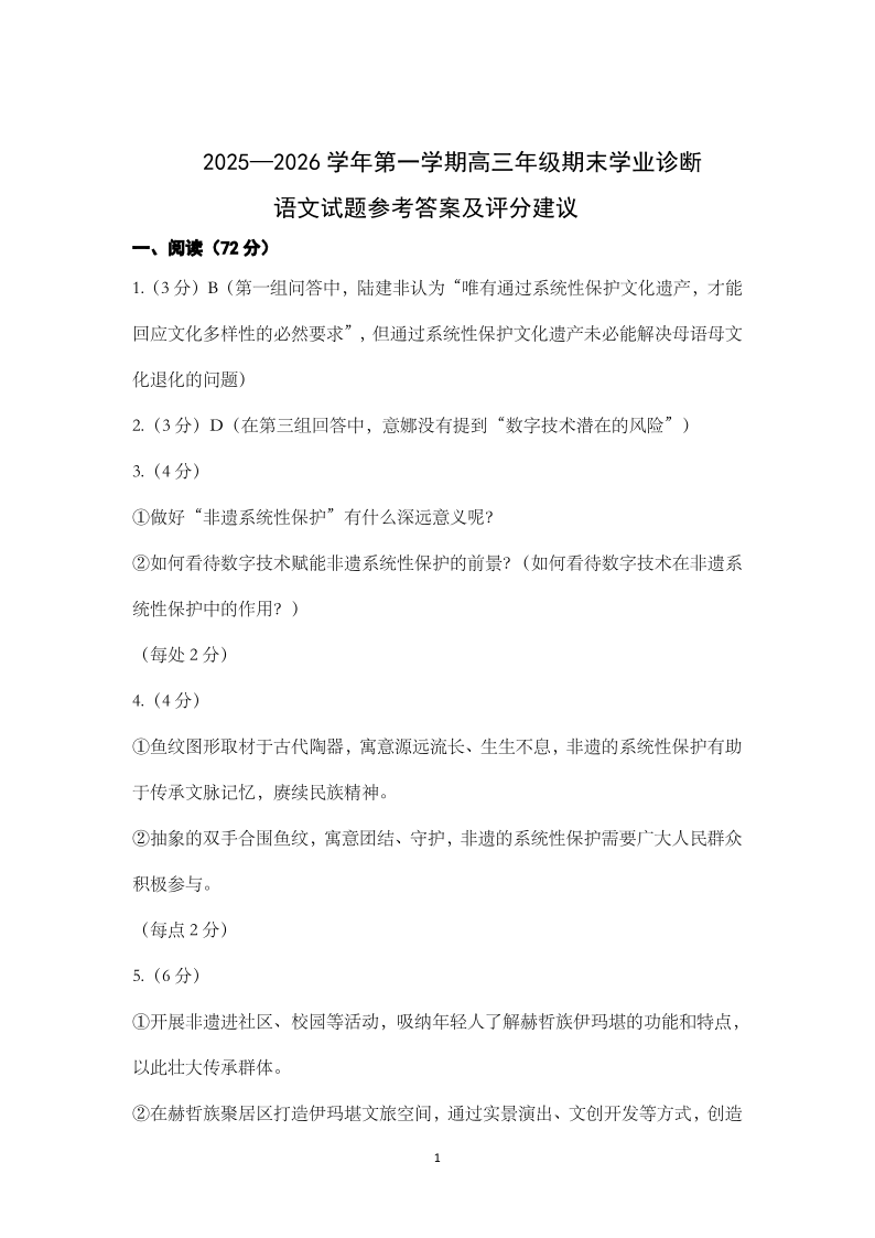 太原25-26学年高三第一学期期末学业诊断 语文答案.pdf