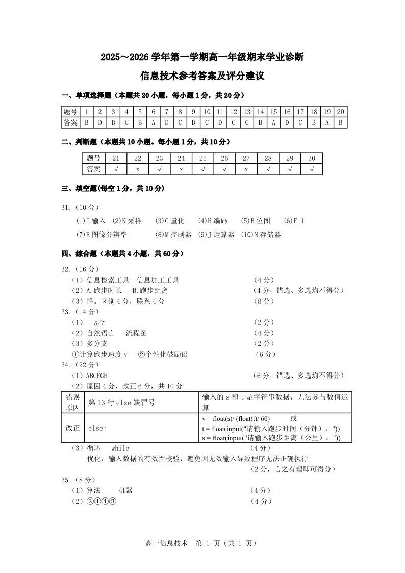 太原25-26学年高三第一学期期末学业诊断 信息技术答案.pdf