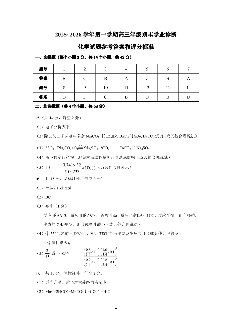 太原25-26学年高三第一学期期末学业诊断 化学答案.pdf