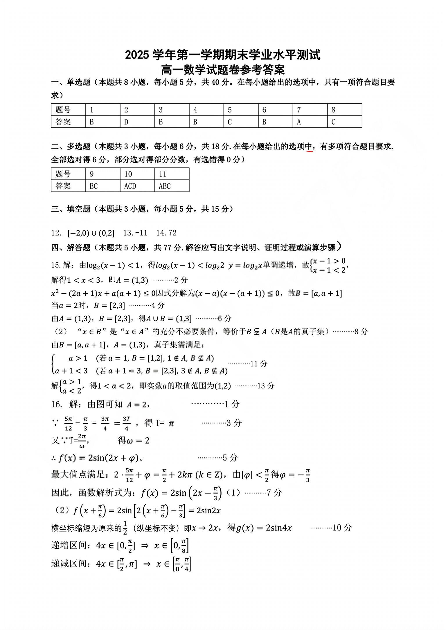 浙江省杭州市2025学年第一学期高一年级期末学业水平测试 数学答案.pdf