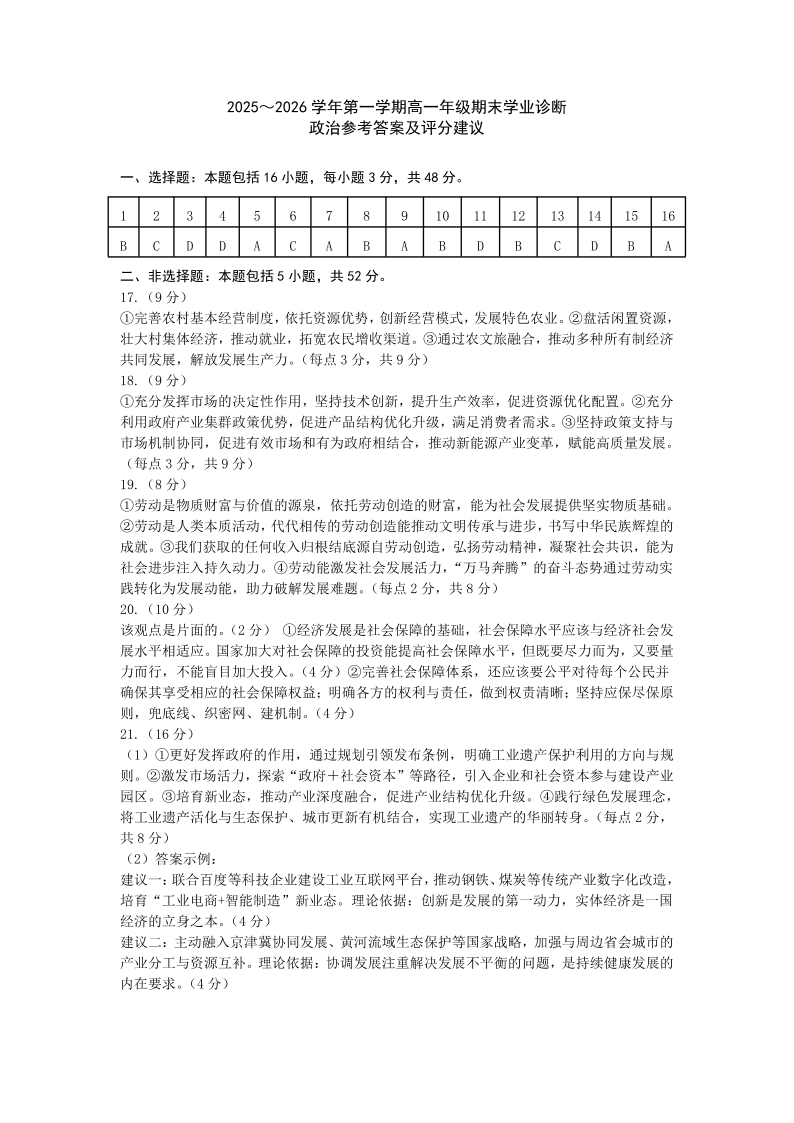 太原市2025-2026学年高一年级第一学期期末学业诊断 政治答案.pdf