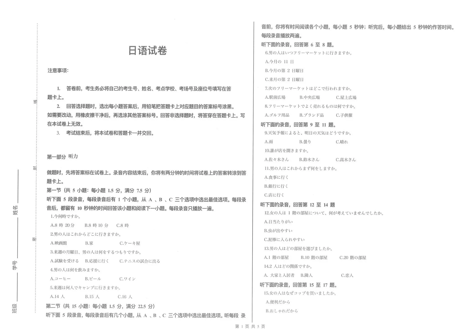 太原市2025~2026学年第一学期高三年级期末学业诊断 日语.pdf