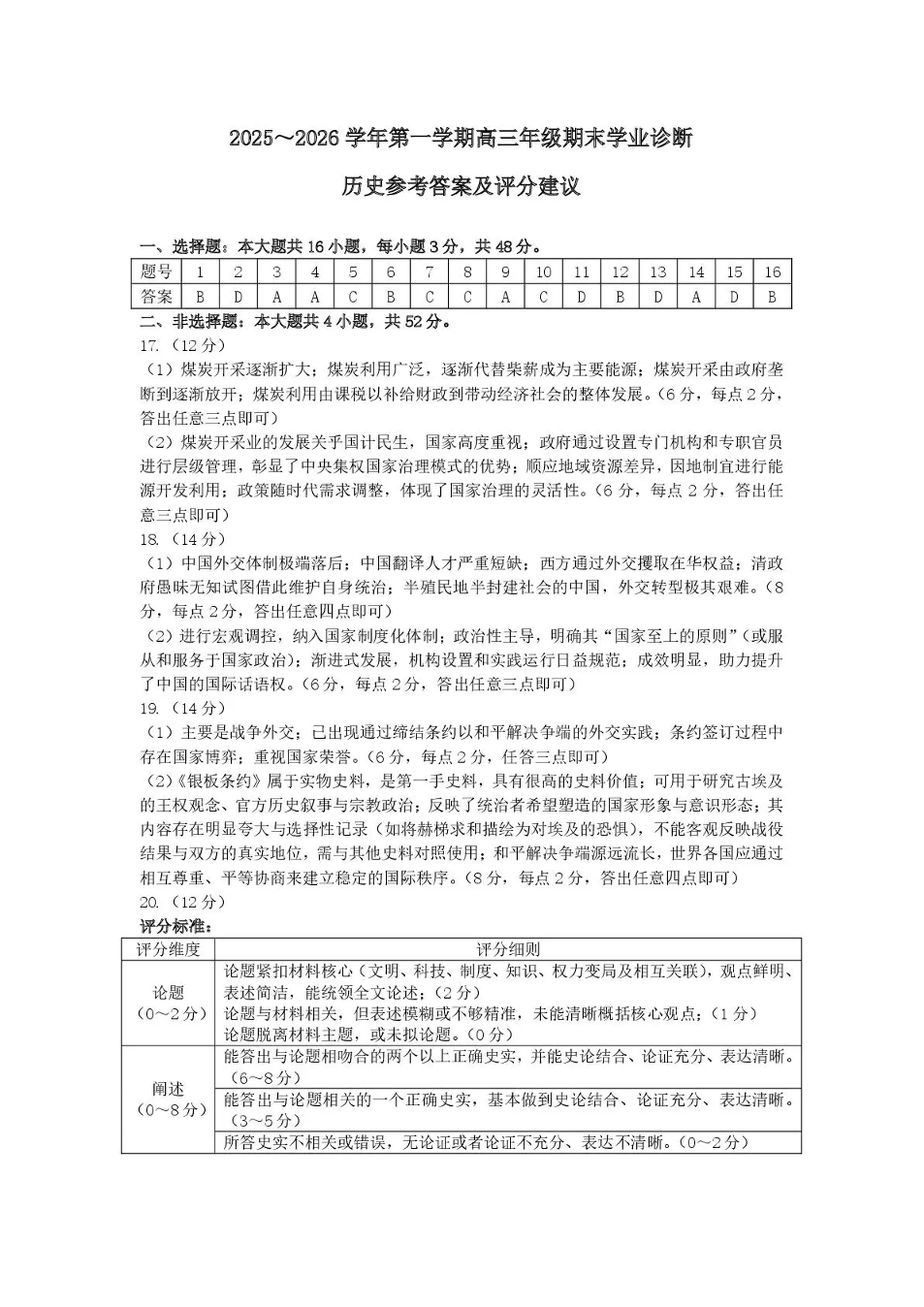 太原市2025~2026学年第一学期高三年级期末学业诊断 历史答案.pdf