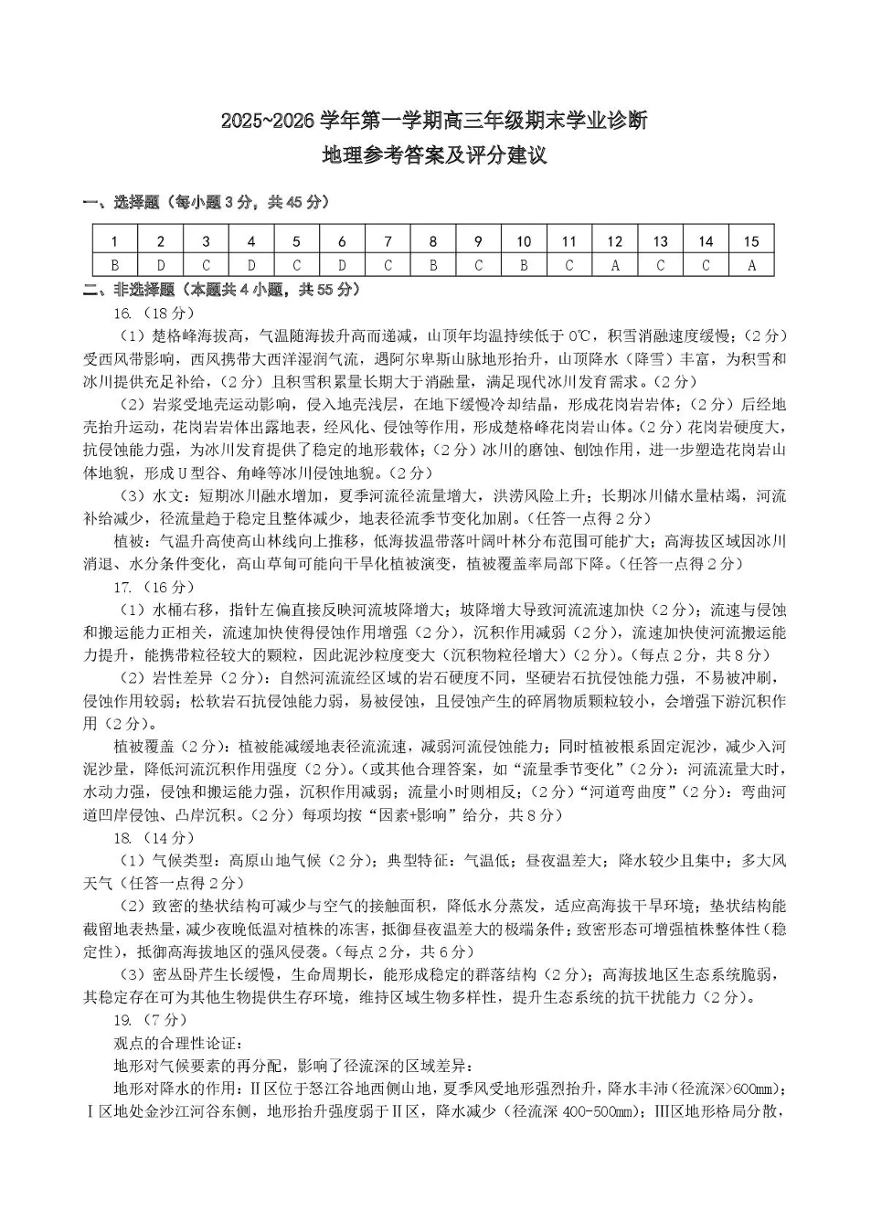 太原市2025~2026学年第一学期高三年级期末学业诊断 地理答案.pdf