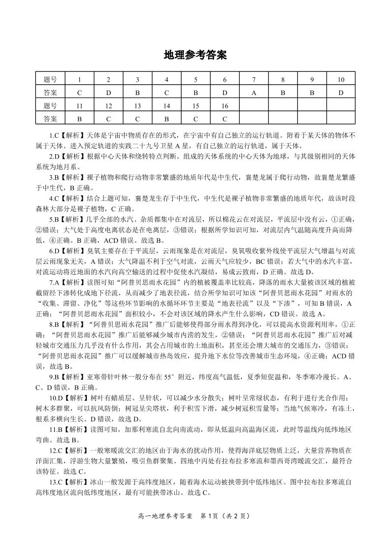 地理答案·安徽省皖江名校联盟2025-2026学年上学期高一期末考试.pdf