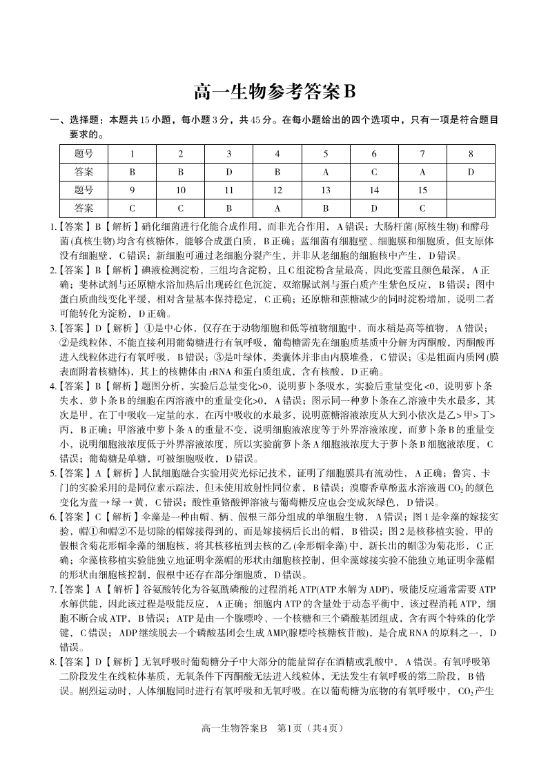 生物答案B·安徽省皖江名校联盟2025-2026学年上学期高一期末考试.pdf