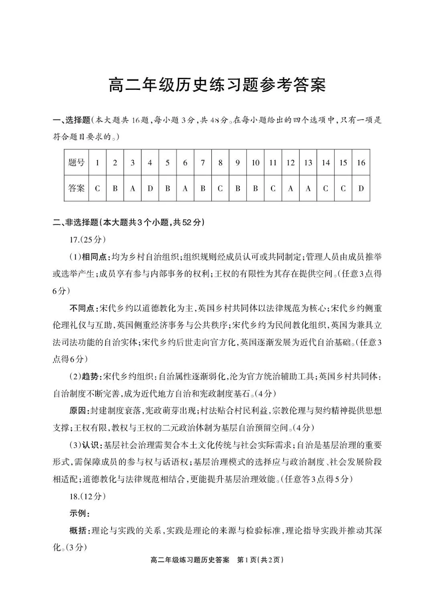 德阳市2025—2026学年高二上学期期末考试 历史答案.pdf