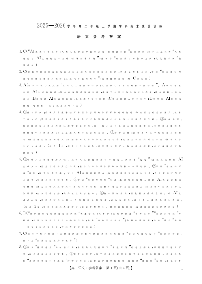 江西省2025一2026学年高二年级上学期学科期末素养训练 语文答案.pdf