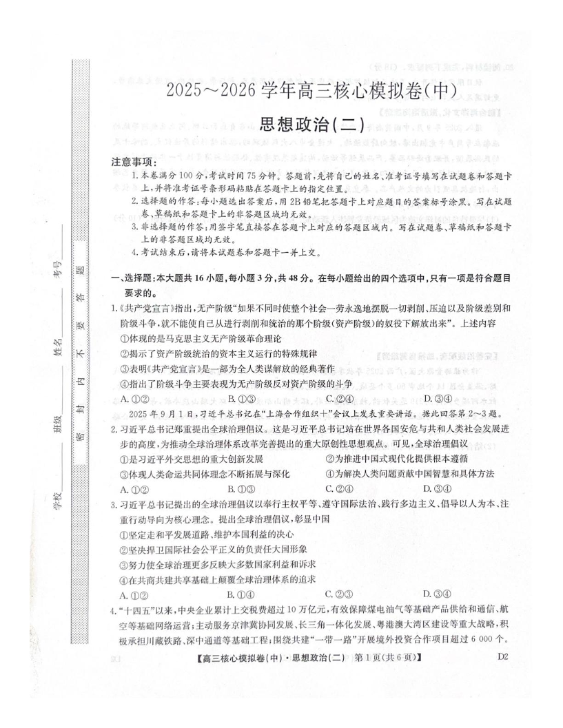 2025~2026学年高三核心模拟卷(中)政治.pdf