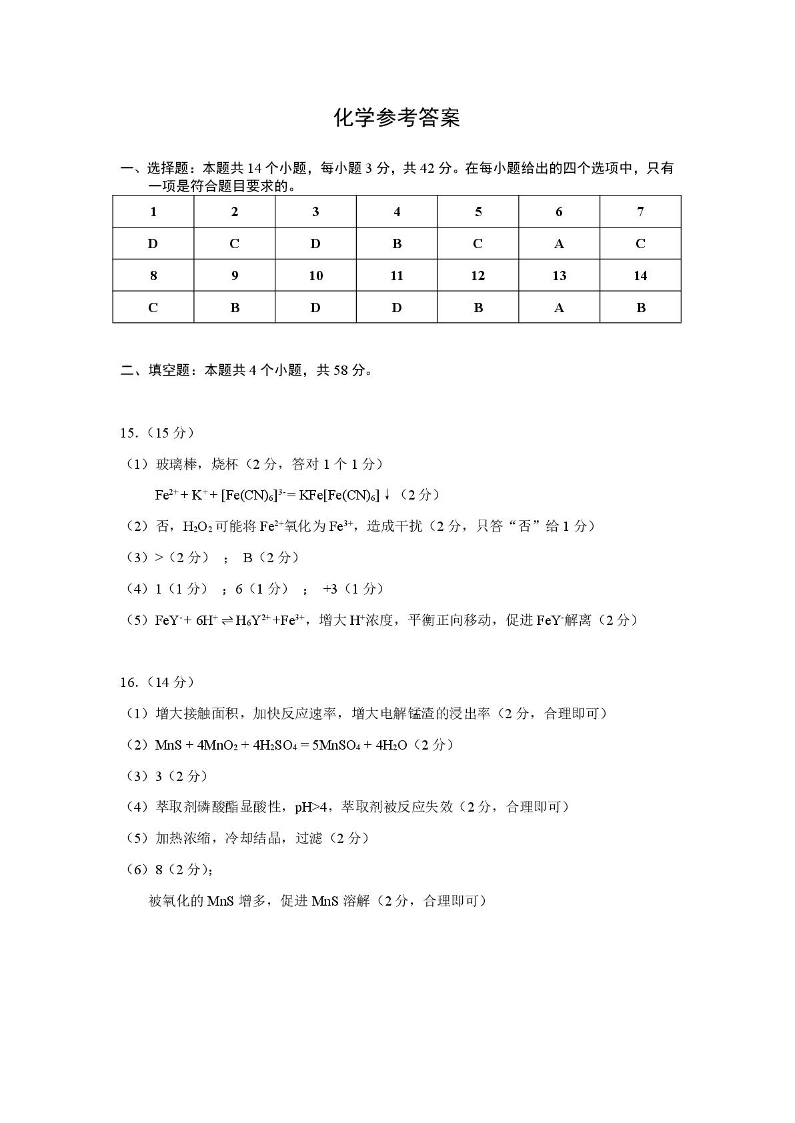 遵义市2026届高三年级第二次适应性考试 化学答案.pdf