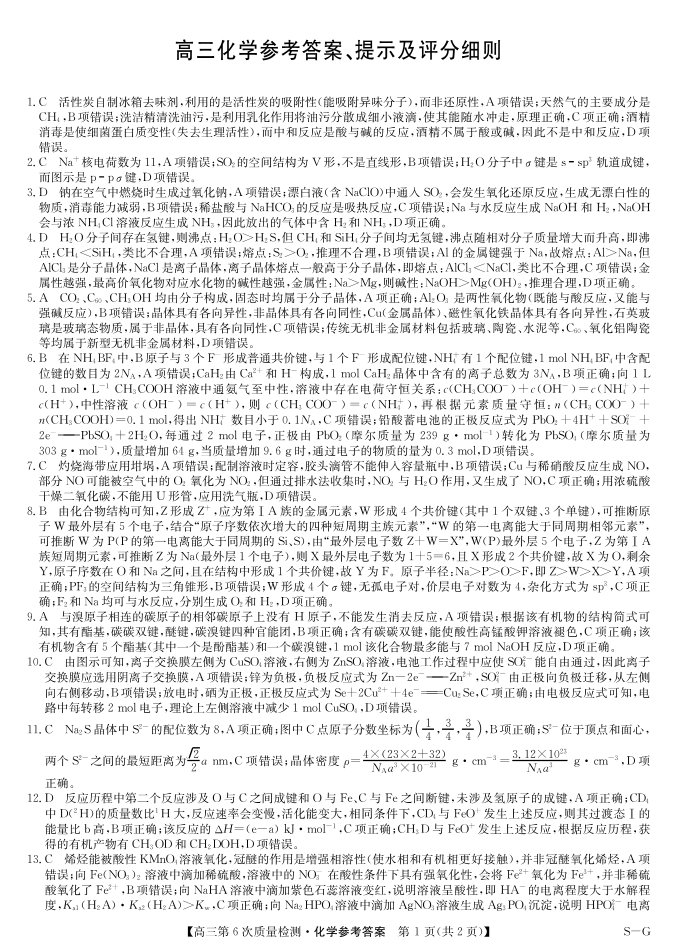 化学答案-第6次质量检测(SG).pdf